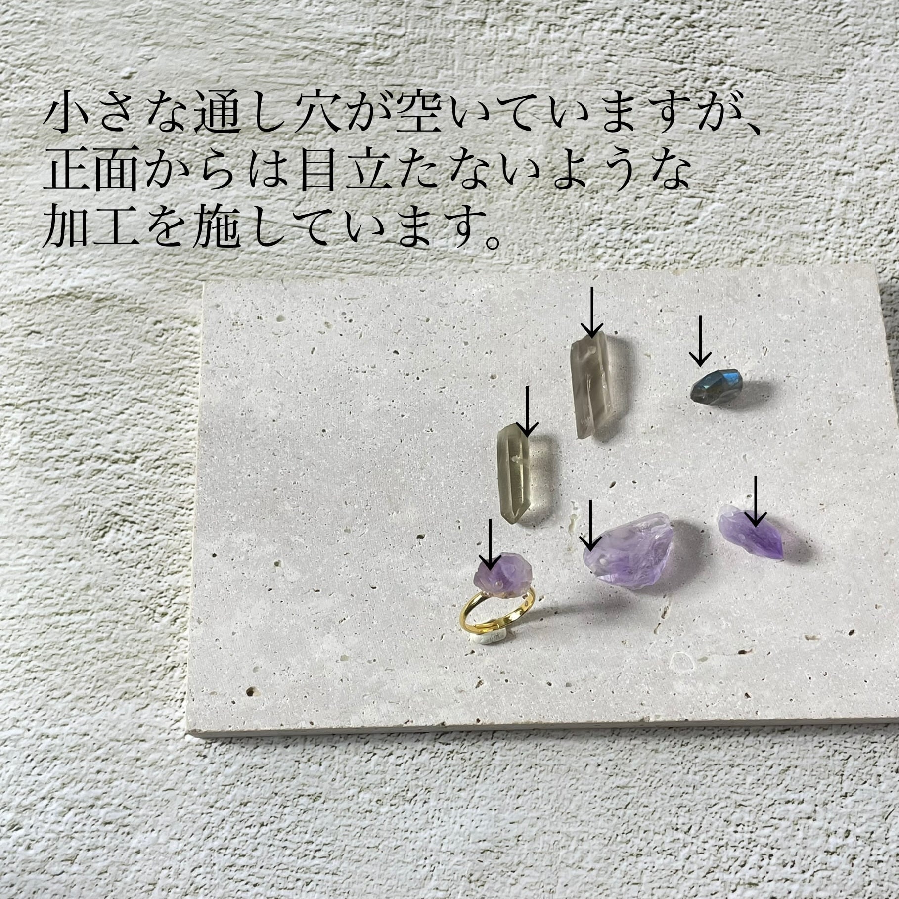 また、こちらの天然石には、小さな通し穴が開いておりますが、正面からは目立たないような加工を施しております。